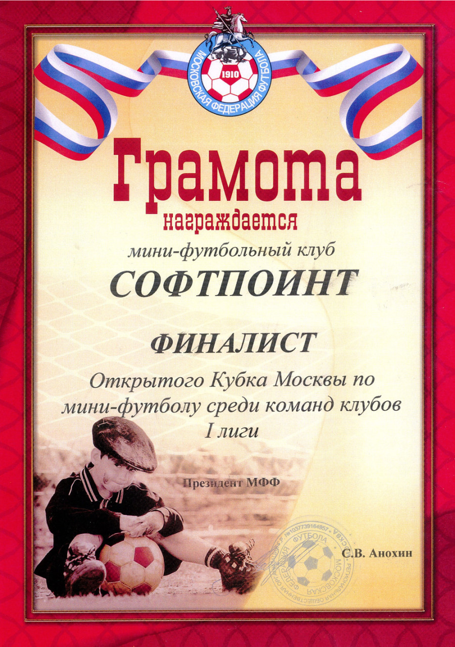 тайма со счетом 8:1. В перерыве тренер команды «СофтПоинт» Роберт Вавилов смог разжечь у игроков боевой дух и после перерыва игра перевернулась! Усилиями Максима Копейкина, Константина Бирюкова, Антона Назарикова счет встречи изменился на 8:5. После перерыва пошла открытая игра на встречных курсах. Команде из города Видное, «Восток-Сервис» повезло еще два раза поразить ворота команды «СофтПоинт». Итоговый счет 10:5. Таким образом был оформлен дубль, победа в чемпионате и кубке одной МФК «Восток-Сервис». Для МФК «СофтПоинт» выход в финал стало высоким достижением, команда стала открытие Кубка Москвы по мини-футболу! По итогам матча состоялось награждение, обладателя кубка и финалиста. Как лучшему игроку матча в составе «СофтПоинт» Максиму Копейкину был вручен ценный приз.